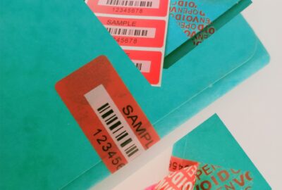 Nuestras etiquetas están disponibles en diferentes tamaños y colores y pueden ser utilizadas en bolsas de papel o plástico, cajas de pizza, cajas de sushi y más. La versión con liberación de residuos deja una impresión colorida en la superficie para resaltar cualquier intento de apertura.